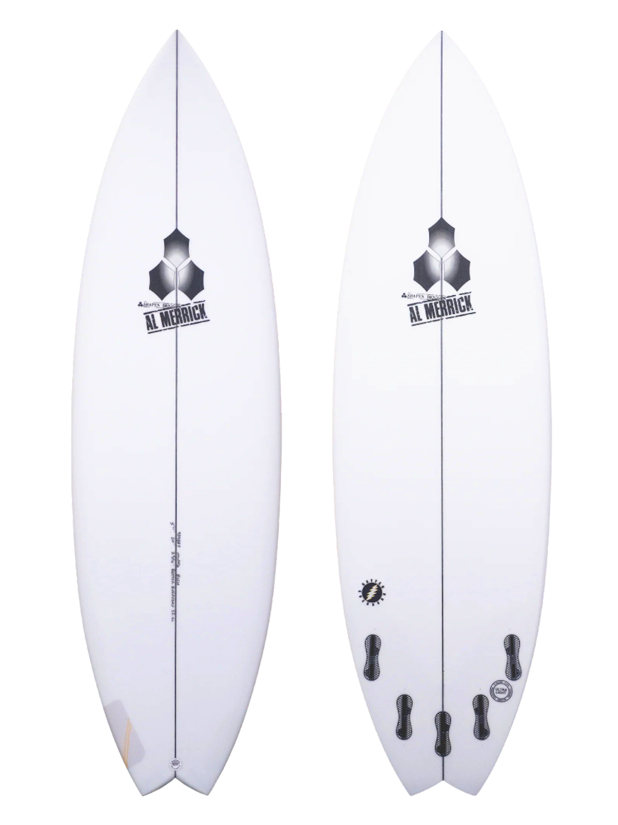 The board comes stock with five fin boxes. Designed as a quad originally Britt also created a special quad set to perfectly compliment the boards characteristics. The fin set combines more upright front fins and raked back fins that give the board the zing and hold to go to the next level.