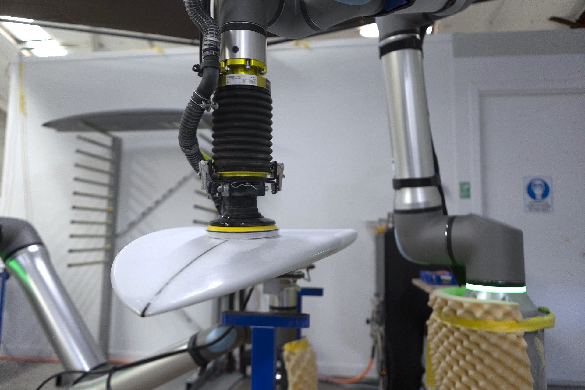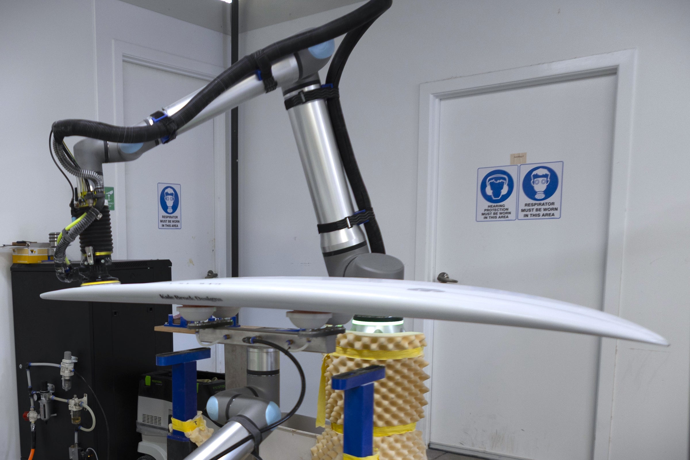 Meet Sand Assist, an automated sanding robot cell purpose-built for surfboards that slots into your existing workflow with minimal change. It reduces finish time from 30–40 minutes to 7–10 minutes per board, removes heavy hand tools from the sander's hands, and lifts each sander’s output with consistent, repeatable passes.
